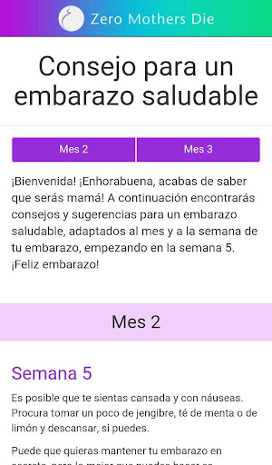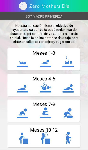 La aplicación Zero Mothers Die proporciona información fundamental para la salud de la madre y del recién nacido, incluyendo consejos para un embarazo saludable y para cuidar al bebé, adaptados a mujeres embarazadas, madres primerizas y familiares y profesionales de la salud. Poniendo a su alcance todos estos conocimientos, se consigue reducir la tasa mundial de mortalidad maternal y neonatal.