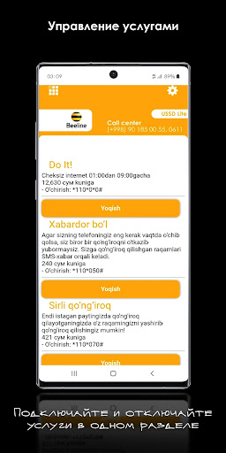 Códigos USSD de todos los operadores celulares de Uzbekistán. En la solicitud, todos los códigos de los operadores de USSD disponibles, como obtener una lista de todos los servicios pagados a los que está conectado, aprenda sobre los minutos de bonificación disponibles, etc.
