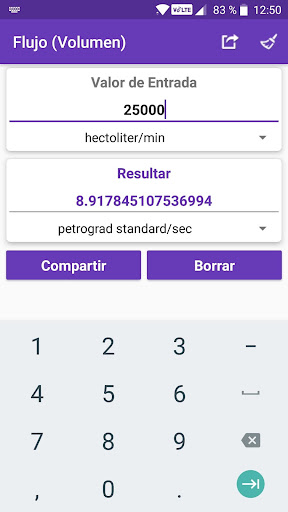 Valores calculados y los resultados se pueden compartir en redes sociales, correo, mensajes y otras aplicaciones para compartir.