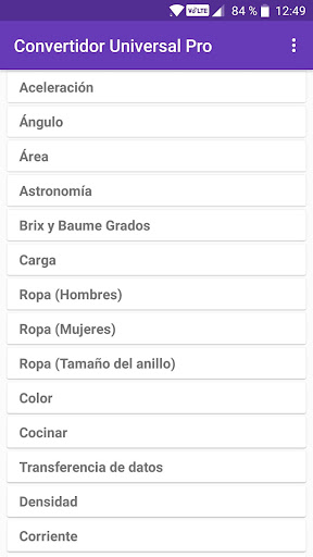 Convertidor Universal Pro es una calculadora de conversión que puede rápida y fácilmente convertir diferentes unidades de medida. Se compone de 62 categorías con 1323 unidades y 54494 conversiones. Valores calculados y los resultados se pueden compartir en redes sociales, correo, mensajes y otras aplicaciones para compartir.
