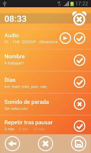 - Selecciona un sonido divertido para que suene al parar o pausar una alarma.