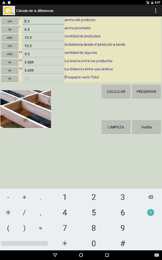 La aplicación se define por el cambio dinámico de unidades. Puede rellenar con una unidad de medida y obtener los resultados en otras unidades seleccionadas. Hay alrededor de 300 unidades posibles. Junto con los cálculos más complejos se encuentra un dibujo.