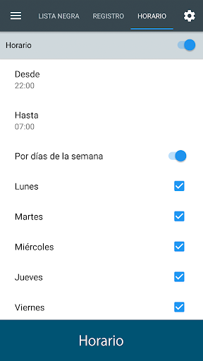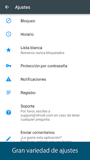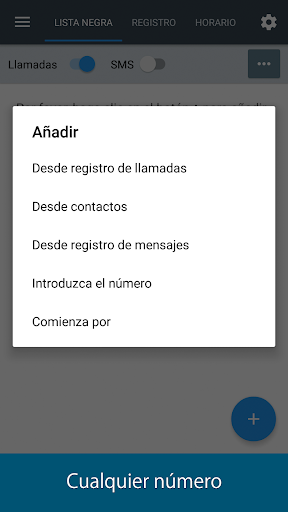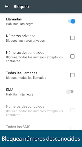 Bloqueador de llamadas y también un eficaz bloqueador de SMS. Bloquea llamadas no deseadas y mensajes de spam. Puede añadir cualquier número a la lista negra o habilitar una de las opciones de bloqueo: "Números privados", "Números desconocidos" o "Todas las llamadas".