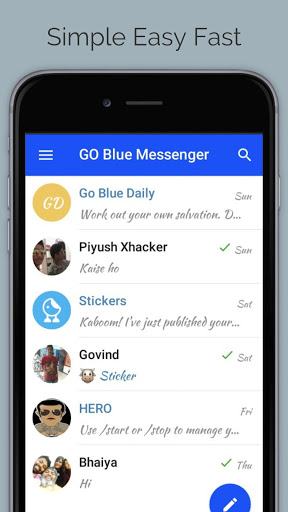 Compartir Go Blue Messenger - Messenger Lite en Snapchat, Facebook, Telegram, Hangout, WhatsApp, Hike, Instagram, Twitter, Con tus amigos universitarios, familiares, amigos, mejores amigos, compañeros de trabajo, etc.