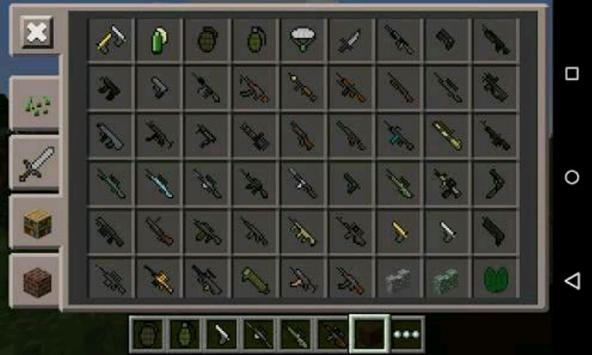 Sniper Rifle, AK47, grenades, carbin, Ray Gun are just few guns to mention.. Gun mod will add 50 guns to your game. Everything from handguns to massive rocket launchers and handheld throwable items like bombs and molotovs..