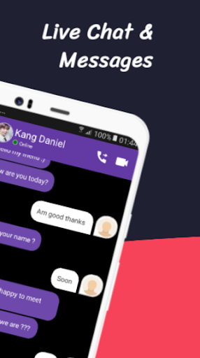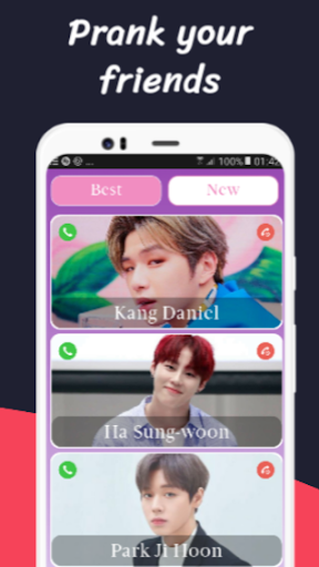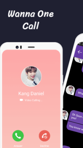 el Famosa Wanna One KPOP Band le está llamando: Solicitud de llamadas y videollamadas falsas para acompañar sus días en su tiempo libre cuando se sienta solitario y aburrido, luego entretente con llamadas falsas de su ídolo. Esta aplicación para simular un Messenger de chat falso con una llamada falsa y videollamadas, agregamos una opción para iniciar un chat en vivo con su celebridad, desea que se vea un verdadero Messenger Chat Messenger. Todo esto solo para bromear a tus amigos o a tu familia para hacer un chat falso con el favorito, quiere decir a un miembro como Kang Daniel, Park Ji-Hoon, Lee Dae-Hwi, Kim Jae-Hwan, Ong Seong-Wu, Park Woo-Jin, Lai Kuan-Lin, Yoon Ji-Sung, Hwang Min-Hyun, Bae Jin-Young y Ha Sung-Woon, tiene muchas opciones para conectarse con su Celebridad de Wanna.