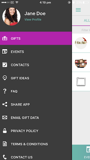 - Vea los regalos por evento o contacte