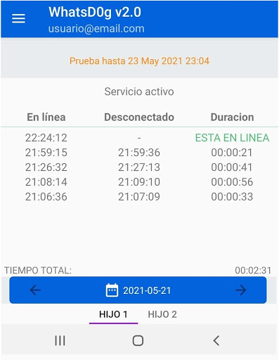 Ver duración, intervalos diarios de actividad, momentos de conexión en WhatsApp