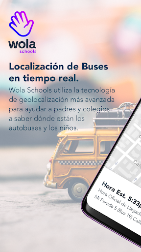 Wola Schools es una app de geolocalización privada que monitorea las rutas escolares de los colegios asociados con Wola Schools para que los padres puedan localizar a sus hijos. La aplicación se activa cuando el supervisor/a que va en el autobús acompañando a los niños la inicia al ponerse la ruta en marcha. Así, los padres pueden rastrear la ruta escolar tanto por la mañana como por la tarde, e incluso durante las excursiones escolares.