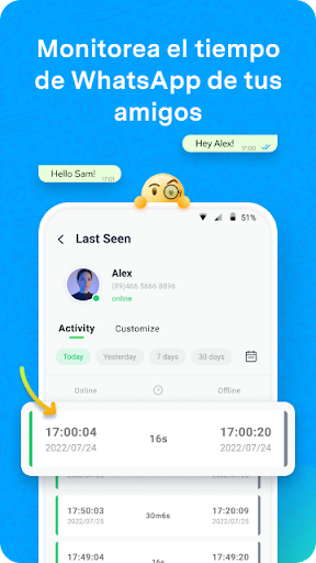 WaLastseen es un rastreador de WhatsApp muy poderoso pero simple, con el que le resultará más fácil que nunca rastrear la actividad en WhatsApp, WhatsApp Business y otras aplicaciones. Con WaLastseen puede analizar fácilmente en profundiza en el uso y los patrones diarios de la persona a la que sigues y conócela mejor que nunca🤩
