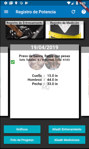 Las mediciones se agrupan por fotos, mediciones generales del cuerpo, mediciones de cinta y mediciones de calibrador. Rastrea solo las medidas que te interesan.