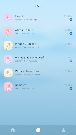 Choose the gender of whom you want to send a bottle to, and start a conversation.