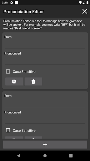 - Supports multiple TTS engine from seperate app (Tap "Download TTS engines")