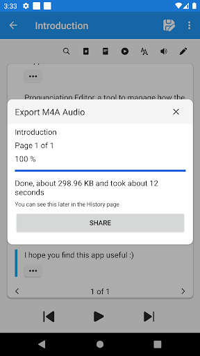 - Export as audio with wav, m4a, mp3 format (mp3 for pro version only)