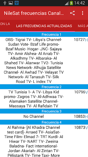 La aplicación "Nilesat Frecuencia Canales" le brinda información detallada sobre los viejos y actualizadas frecuencias de 2017 para todos los canales de TV y de radio en la órbita 7w (Nilesat 102, 201 y Eutelsat 7 WA)