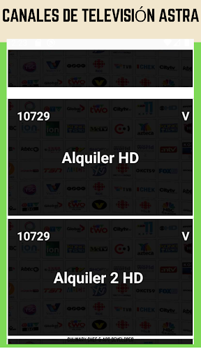 En la aplicación de información de canales de radio y televisión de Astra hay diferentes canales como:
