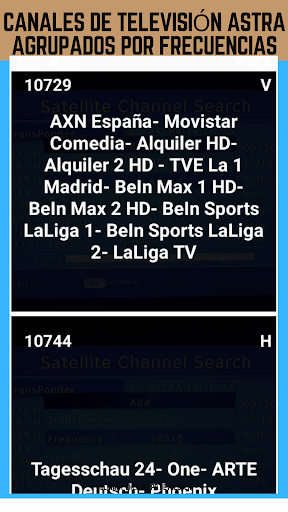 Nota: La aplicación es para listar frecuencias de canales, no para ver los canales.