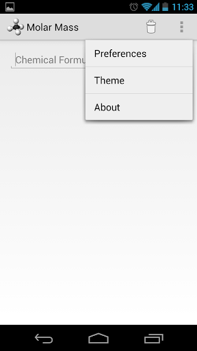 Enter a chemical formula and this app will calculate its molar mass. The app works like a calculator so no internet connection is required in order to perform the calculation, you can use it offline.
