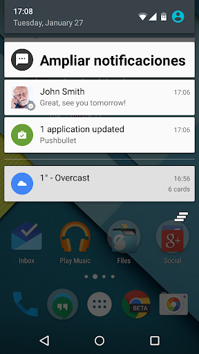 ✓ Usa acciones de notificación ampliadas directamente sin abrir la aplicación original.