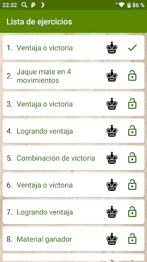 La versión gratuita contiene 18 acertijos interesantes con combinaciones de victoria, logrando ventaja y jaque mate en varios movimientos. Después de resolver cada uno de ellos, se abre la oportunidad de ver el juego de ajedrez completo, de donde se obtuvo la posición del ejercicio.