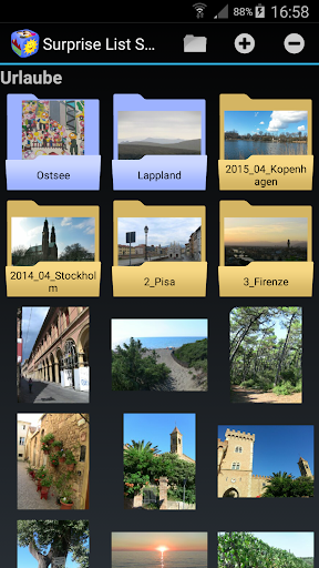 Esta aplicación le permite seleccionar una cantidad arbitraria de imágenes y carpetas que están almacenadas en su teléfono inteligente (o tableta, incluida la tarjeta SD) en una lista, y luego, cuando lo desee, mostrar una foto al azar de su lista.