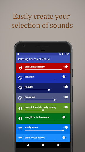 Do you have trouble sleeping? Just select and mix the sounds you like and you will easily fall asleep. All sounds have been carefully selected to satisfy your needs. Relax and fall asleep easier than ever before.