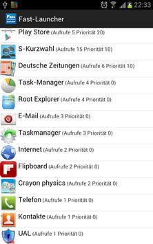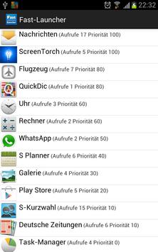With Fast Launcher, programs can be quickly found and called. The more frequently an app with the fast launcher is called, the higher the listing. Thus you will find the most frequently used apps at the top.