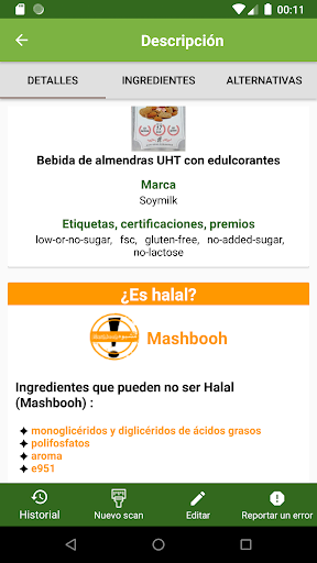 ✦ Para cada producto escaneado, tiene una lista de productos Halal alternativos, o similares, y dónde encontrarlos.