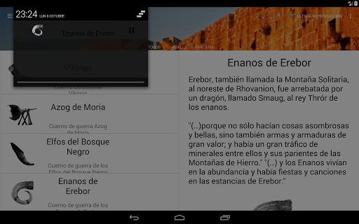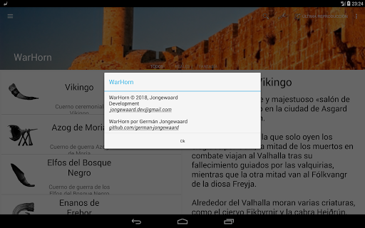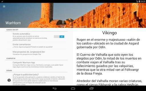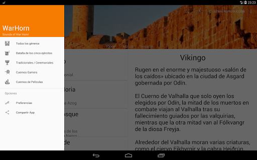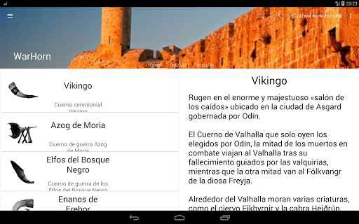 • MULTIMEDIA: Escucha el sonido de cada cuerno y aprende cómo eran los sonidos reales de algunos de los mejores cuernos de guerra. Conozca y visualiza la imagen real del cuerno de batalla y haga clic en ella para recrear el sonido original, comparte la aplicación con tus amigos y conocidos.