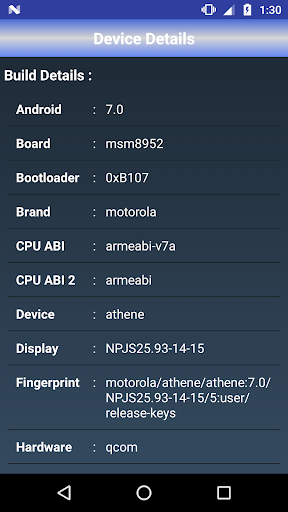 Detalles de construcción: Este módulo proporciona información de varios componentes de compilación de su teléfono o tableta Android, incluso aquellos detalles relacionados con la construcción, es difícil encontrar cualquier lugar en el dispositivo, y Basado en la información de construcción se pueden tomar pasos confiables.