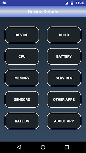 Detalles del dispositivo: la información del dispositivo muestra a los usuarios los detalles necesarios sobre el teléfono o la tableta. Detalles del dispositivo: la aplicación de información del dispositivo facilita el dolor de buscar todos estos detalles en diferentes lugares. Detalles del dispositivo: la información del dispositivo había comprado toda la información de su teléfono en un solo clic y una pantalla. Da los detalles basados en los siguientes módulos:
