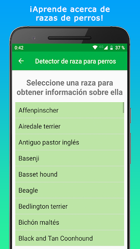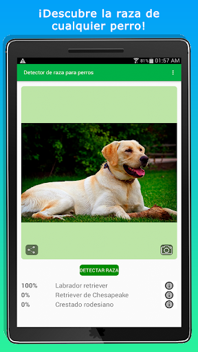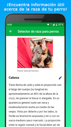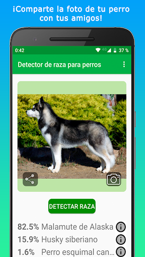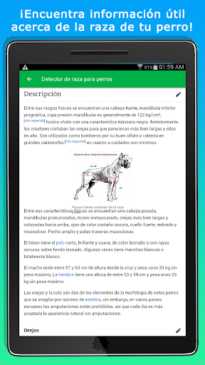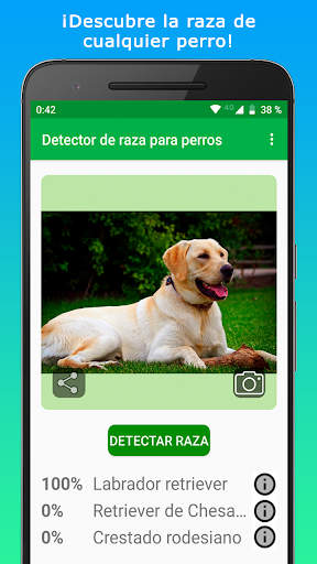 Con “Identifica la raza de tu perro - Escáner de perros” puedes escanear cualquier perro e identificar su raza. Nuestro escáner analiza rasgos caninos y los clasifica para detectar razas de perro puras. Si tu perro es una cruza de razas, identifica sus ancestros de raza pura. Encuentra información útil sobre más de una centena de razas dentro de nuestro escáner de perros. Identifica la raza de tu perro y aprende sobre ella.