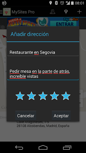 - Busca y Guarda con sólo dejar pulsado el mapa! No es necesario estar en el lugar para poder guardarlo.