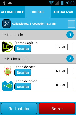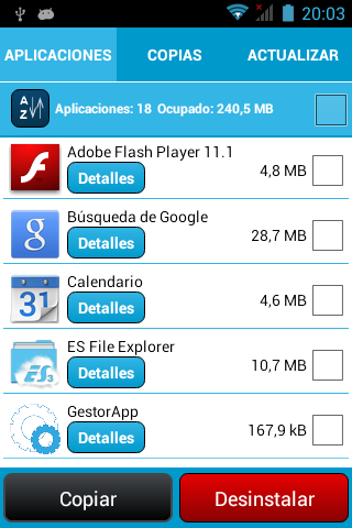 Sencillo e intuitivo gestor de aplicaciones con el que podrás hacer copias de seguridad, desinstalar, re-instalar y actualizar tus aplicaciones.