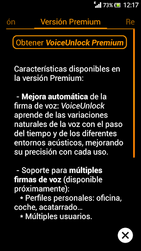 - Permite utilizar contraseñas de voz definidas por el usuario (disponible en próximas versiones de VoiceUnlock).