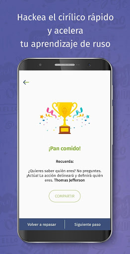 Esta app, fácil de usar, te permite aprender el alfabeto ruso (cirílico) con facilidad. Puedes practicar todas las palabras rusas con la función de