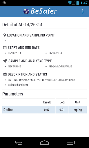 - Georeferenciación de muestras. La APP BeSafer también le permitirá georeferenciar muestras automáticamente, para así poder hacer mapeos de forma fácil y con el máximo detalle.