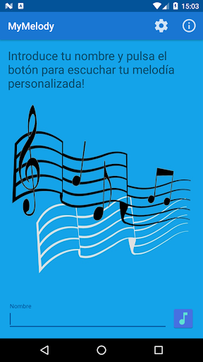 Introduce tu nombre y pulsa el botón para escuchar tu melodía personalizada. Puedes modificar el instrumento con el que quieres que suene tu melodía en los ajustes de la aplicación.