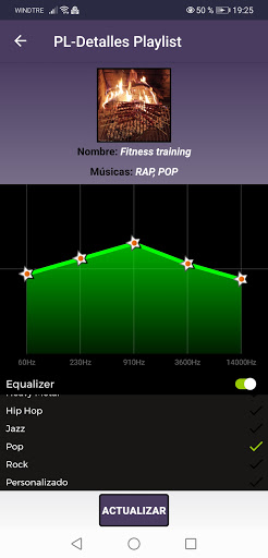 También puede establecer una ecualización ad hoc, tanto en la lista de reproducción como en el nivel de una sola canción.