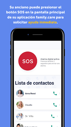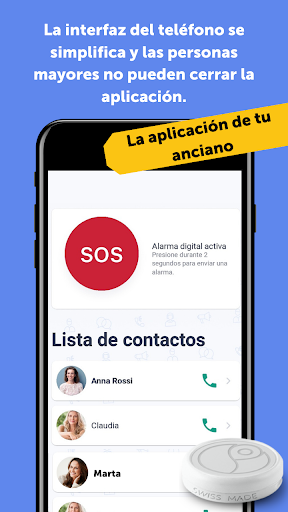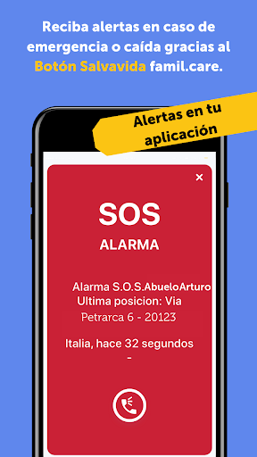 - Reciba alertas si tienen una emergencia gracias a la presión del botón de emergencia dado (Función SOS) | p.ej. si necesitan ayuda en casa o afuera