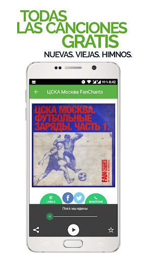 para escuchar en tus parlantes, enviar a amigos y usar como ringtones de fútbol. Reciba notificaciones para escuchar nuevos cánticos de fans de CSKA Moscow y use la opción de grabación para añadir nuevos