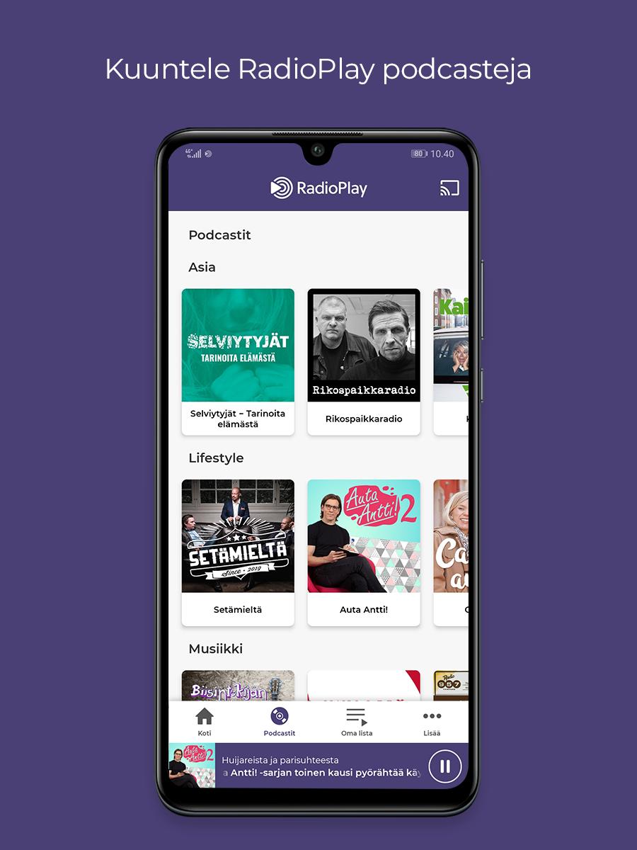 RadioPlay:stä löydät monipuolista ja inspiroivaa kuunneltavaa Suomen mielenkiintoisimmilta henkilöiltä. Voit kuunnella nettiradioita ja podcasteja missä tahansa. RadioPlay:ssa olevat podcastit pureutuvat monipuolisesti eri aihealueisiin kuten musiikki, kirjallisuus, parisuhde, rikos, elokuvat ja ystävyys.