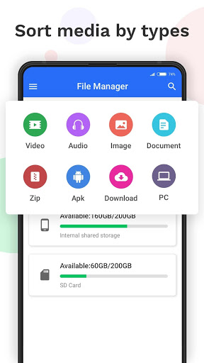 File Manager es un explorador de archivos fácil y potente. Es totalmente gratuito, muy rápido y completo. Proporciona una interfaz simple y agradable, para que pueda usarla fácilmente. Con File Manager, puede administrar fácilmente todos sus archivos y carpetas en su dispositivo, incluidos algunos archivos ocultos. Puede administrar sus videos, música, fotos y cualquier cosa en su teléfono, es compatible con la operación de la tarjeta SD, también puede administrar archivos en su tarjeta SD.