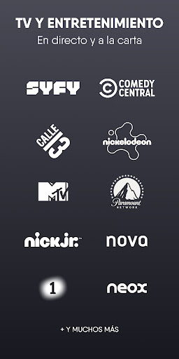 Contamos con los canales de pago más demandados: Calle 13, SyFy, Comedy Central y Nickelodeon, además de otros canales de entretenimiento como MTV, Nick Jr. y los canales en abierto más vistos de la TDT: Antena3, La Sexta, TVE, Neox y Paramount Network, entre otros.