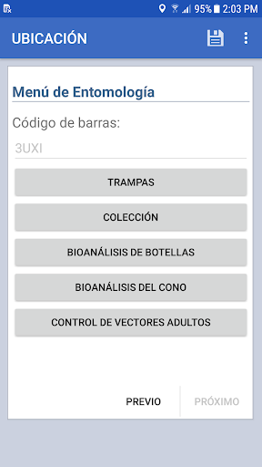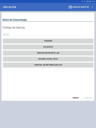 • Módulos de entrada de datos para: 1) captura, 2) encuestas de hogares, 3) bioensayos de botella / tubo, 4) bioensayos de cono y 5) actividades de control de vectores