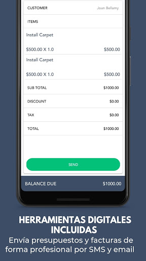 a sus clientes con un perfil professional, en su presupuesto, facturas y comentarios (todo a través de SMS y correo electrónico para obtener respuestas rápidas y facilitarte el trabajo)