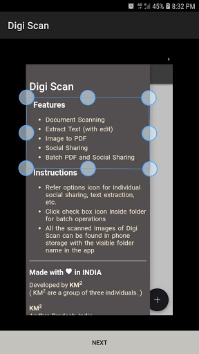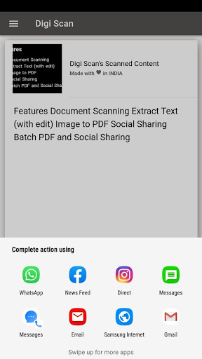 Digi scans helps in scanning, extracting text, creating PDF and you can also share the scanned documents.