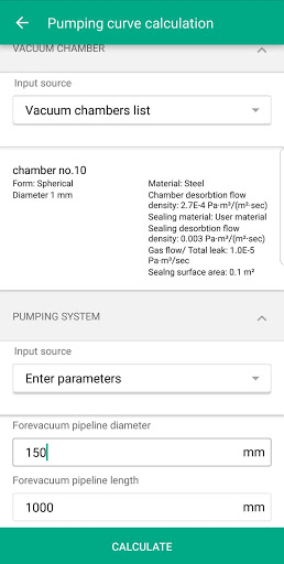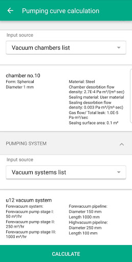 Vacuum app vacuum system pumping curve calculation