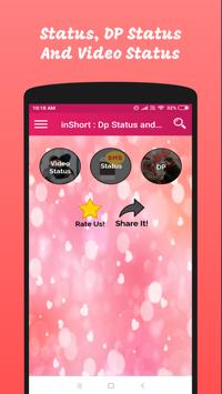 Use inShorts : Dp Status and Video app to send beautiful status with quotes to wish, great or express your feelings. inShorts : Dp Status and Video provides dp, status and video status for Whatsapp. You can choose your desired one from inShorts : Dp Status and Video app.