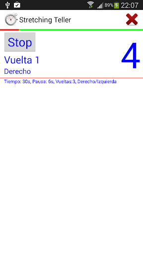 Temporizador básico práctico para los ejercicios de estiramiento. El cronómetro muestra el tiempo y reproduce un sonido cuando se inicia, el acabado y entre vueltas. Inicio y fin tienen un sonido diferente.